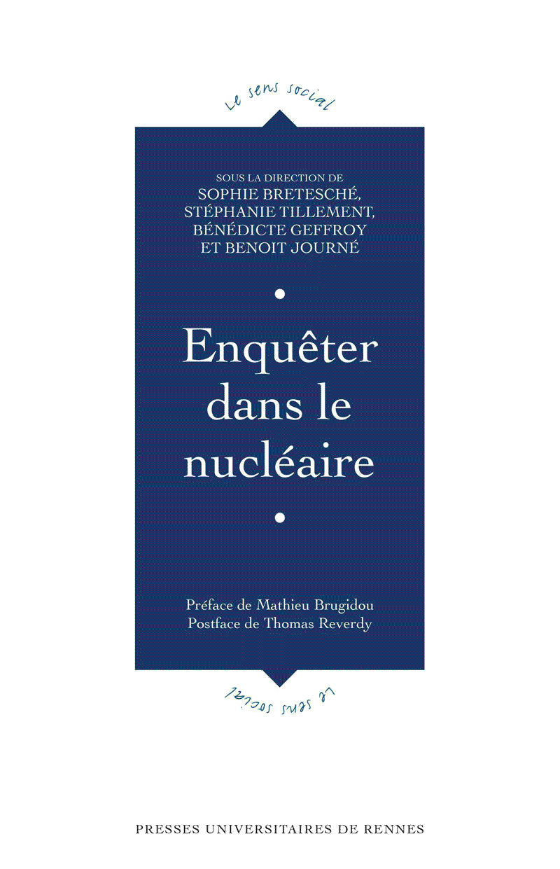 Sophie Bretesché, Stéphanie Tillement, Bénédicte Geffroy et Benoît Journé (dir.), Enquêter dans le nucléaire, Rennes, PUR, 2022.