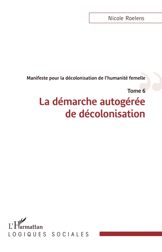 Nicole Roelens, La démarche autogérée de décolonisation. Manifeste pour la décolonisation de l’humanité femelle, tome 6, Paris, L’Harmattan, 2022.